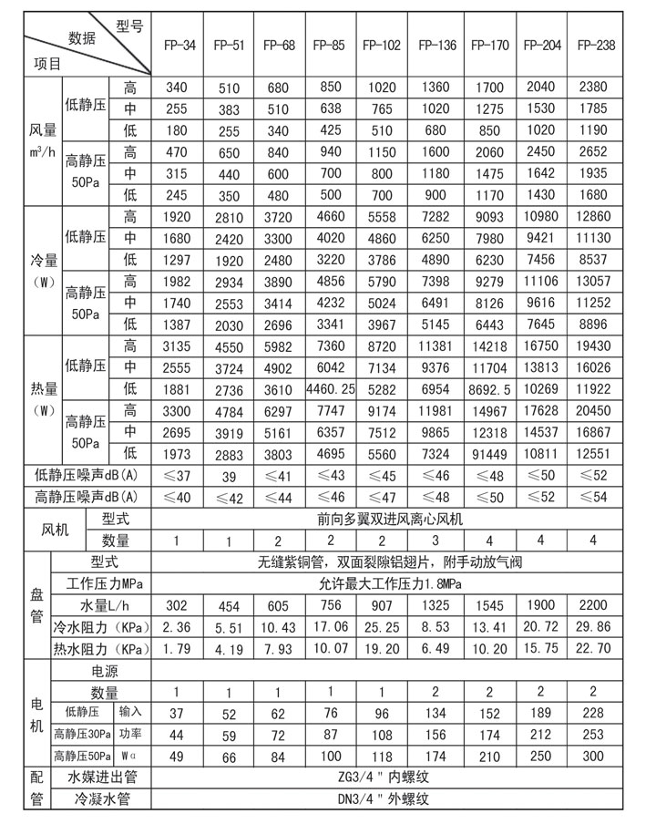 ■FP系列風(fēng)機(jī)盤管性能參數(shù)表