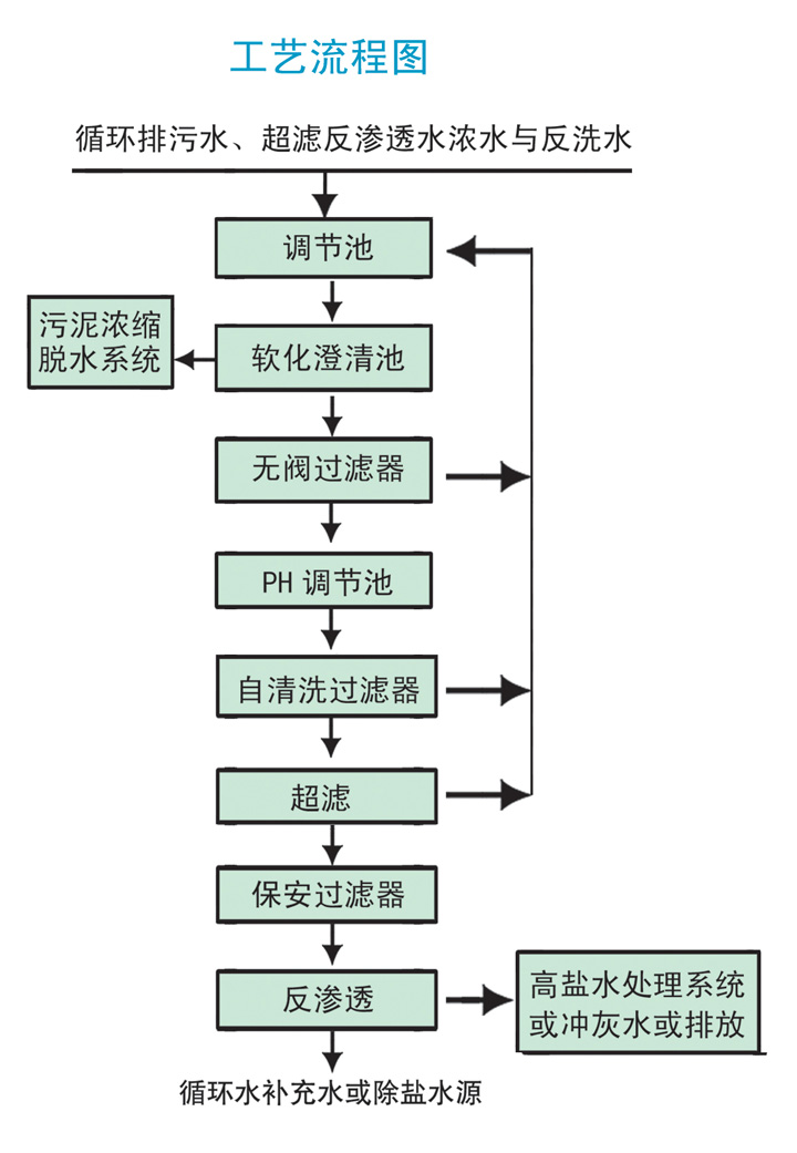 電力、冶金、石化、電子、煤化工等行業(yè)循環(huán)水系統(tǒng),每天排放大量經(jīng)濃縮后的循環(huán)水。同時(shí)在制備除鹽水過程中,附帶產(chǎn)生大量超濾和反滲透濃水以及反洗水,統(tǒng)稱為清凈下水。盡管這些廢水水質(zhì)達(dá)到排放標(biāo)準(zhǔn),但如果排放到自然環(huán)境中,同樣增加對(duì)環(huán)境的不良影響,對(duì)于排放總量控制不利。因此應(yīng)對(duì)清凈下水進(jìn)行處理回用,既提高水資源利用率,又減少排放量。