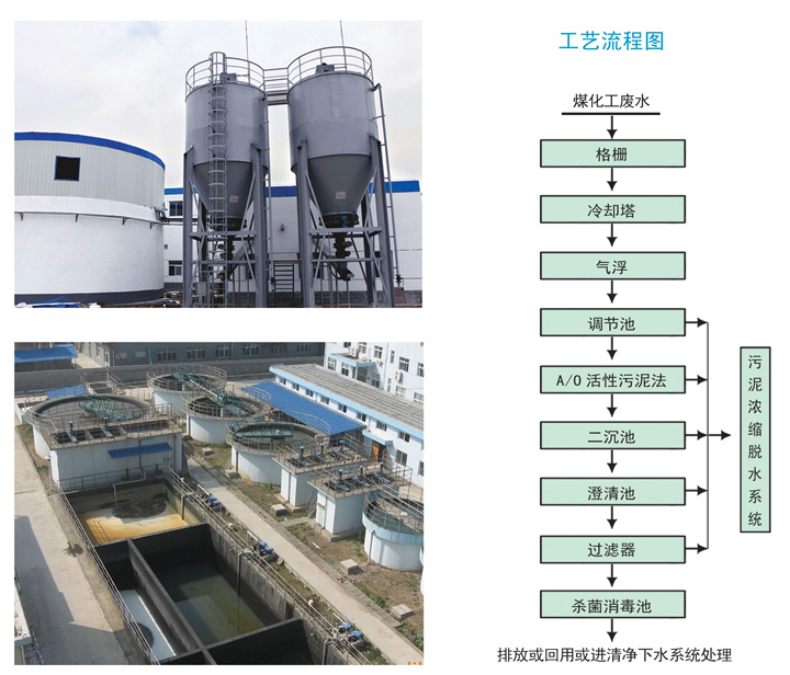 本公司根據(jù)設(shè)計(jì)標(biāo)準(zhǔn)和規(guī)范和工程實(shí)踐,開(kāi)發(fā)出煤化工廢水處理工藝。該工藝具有流程適應(yīng)性強(qiáng)、操作簡(jiǎn)單、投資少、耗水低優(yōu)點(diǎn)。